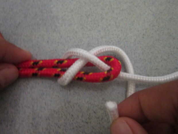 la curva de la hoja es la manera "adecuada" para garantizar dos cuerdas juntas. Aunque un nudo cuadrado hará el trabajo, la curva de la hoja elimina cualquier resbalón que un nudo cuadrado tendrá inherentemente y funciona mejor con cuerdas de di