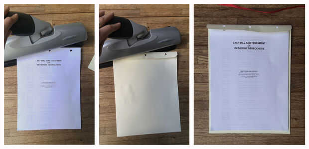 Doblar la parte superior de la voluntad de cubierta hacia abajo aproximadamente 1". Perfore agujeros a través de ambas capas de la voluntad de la cubierta, teniendo cuidado de alinear con los agujeros de la voluntad.