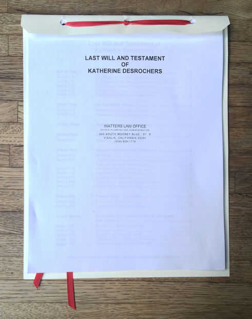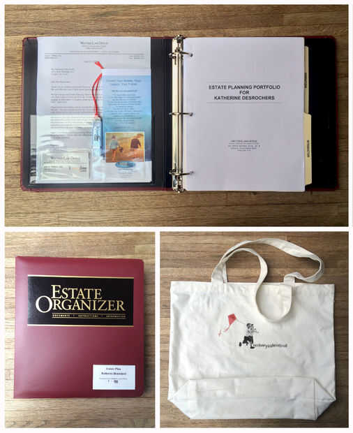 En la oficina de derecho de Joan A. Watters, la voluntad es plegada en una envoltura y luego poner dentro de inmuebles del cliente planificación carpeta junto con las directivas médicas, información de confianza o cualquier otra cosa que he preparado. La carpeta se desliza en una única bolsa diseñada especialmente como un regalo de acabado para los planes de Finca completa, y luego el paquete es completo!