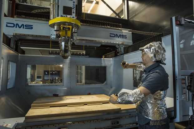 El Presidente de Divisadero es explorar cómo 3D software de modelado, captura de 3D y fresado de 5 ejes CNC pueden combinarse para permitir un uso más sensible de los materiales. Las herramientas tradicionales de hacen cuadrados y círculos muy bien,