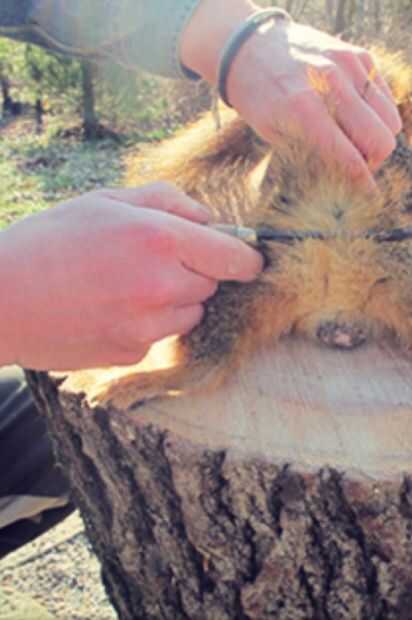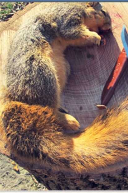 poner la ardilla sobre un tocón o la mesa y cortar justo por encima de su ano