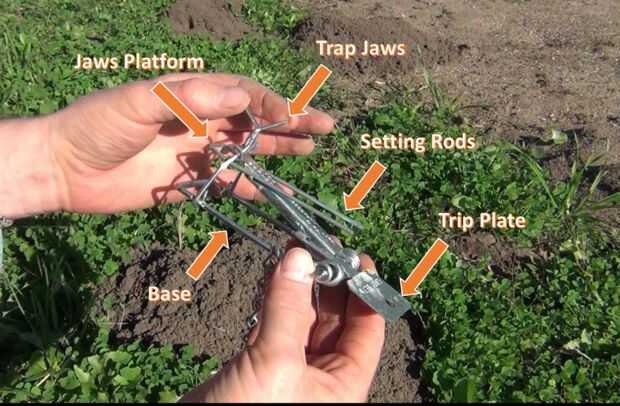 Es importante saber las partes y piezas antes de comenzar este proceso, esta trampa no es humana y ha herido, sin duda, unos amigos desinformados/desenfocado durante los años. Usaré los términos marcados en la foto de arriba como que demuestran cómo la trampa.