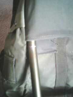 El primer paso que tenemos que hacer es marca donde se sujetará la banda superior o la parte trasera de los tirantes. 1. Attatch el bolsillo de la mochila ALICE donde el marco se desliza hacia. 2. Marque donde el bolsillo se detiene en el marco con un rotulador