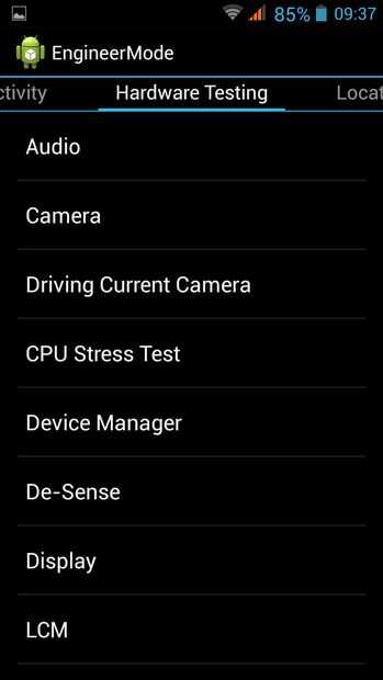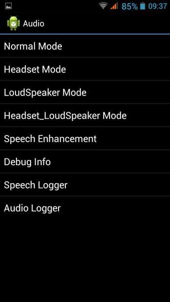 --> aparecerá un EngineerMode , deslizar izquierda para llegar a Pruebas de Hardware, pulse en el Audio y que el grifo en Modo Normal.