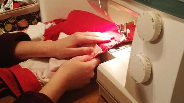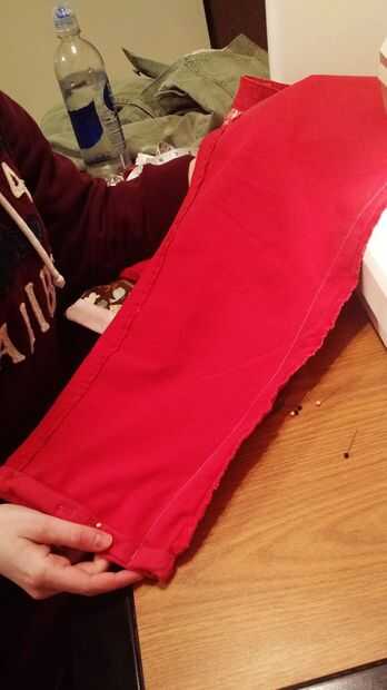 3. coser todo el camino a través del dobladillo de los pantalones; pespuntes.