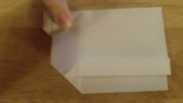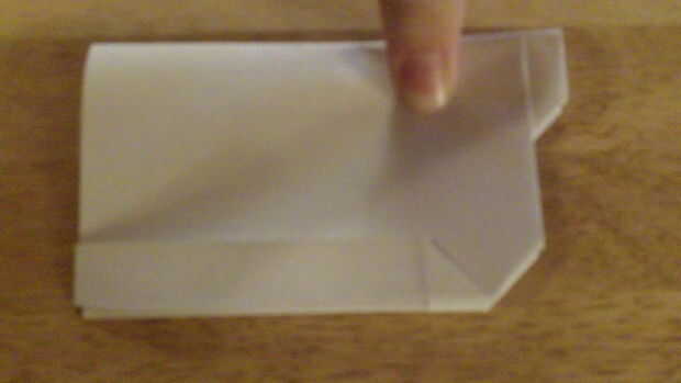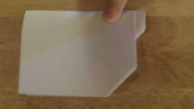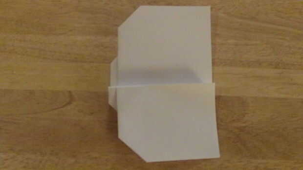 Doble de la raíz del ala izquierda hacia abajo a unos 3/4 de pulgada sobre el centro. Repita en el otro lado. Luego doblar dos aletillas encima 3/4 de pulgada desde el borde de la punta del ala.