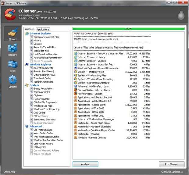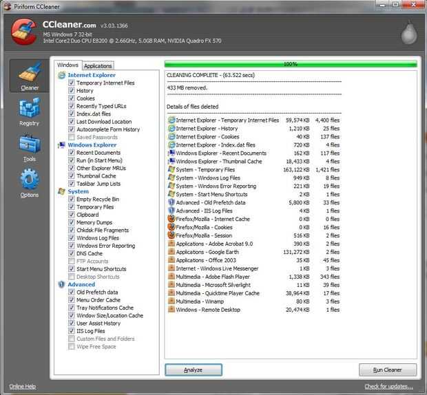 II.) en la parte inferior derecha de la ventana haga clic en "Ejecutar limpiador". Al finalizar, aparecerá el diálogo "Limpieza total" con aproximadamente el mismo Resumen de antes.