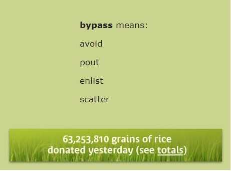 3) para cada palabra que tienes derecho, nos donan 10 granos de arroz al programa mundial de alimentos de las Naciones Unidas.