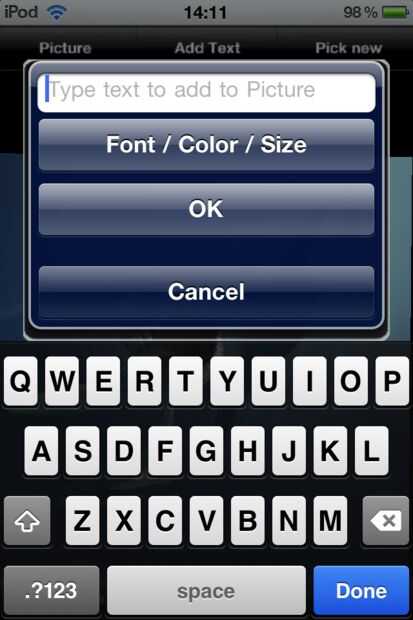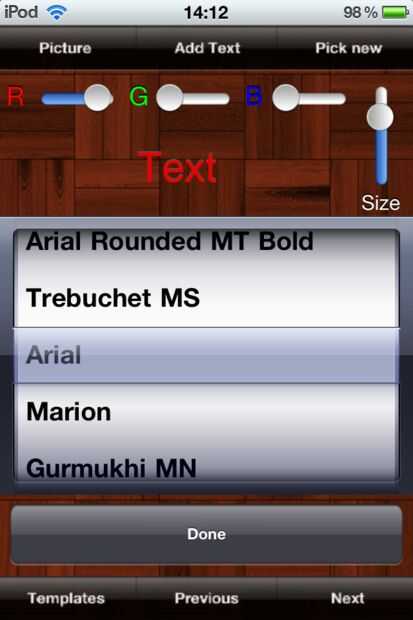 Seleccione "Tamaño de Color de fuente" y cambio de fuente/color/tamaño para adaptarse a tu foto.