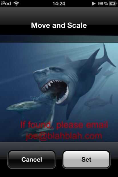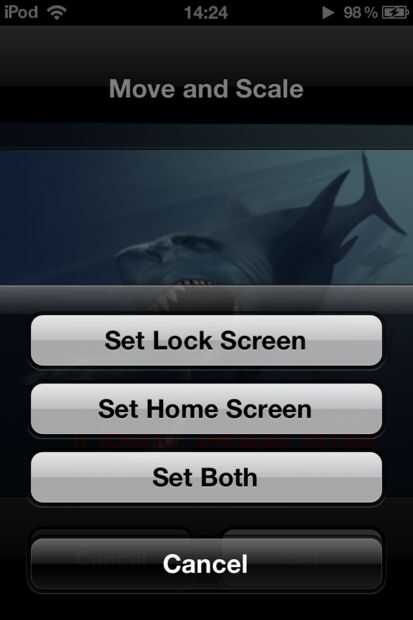 Ir a "Fotos," encontrar la foto, toque en "Compartir" luego "Usar como fondo de pantalla," luego "Sistema", luego "Set de bloqueo de pantalla."