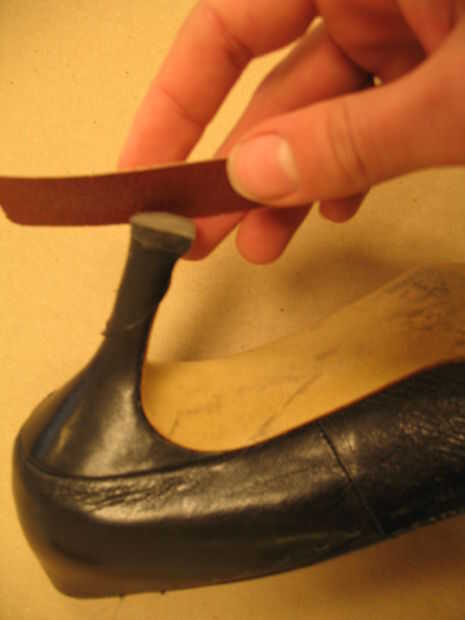 Para preparar los talones pegamento-ing, limpiar y lijar con papel de lija y hacerlos libre de polvo.