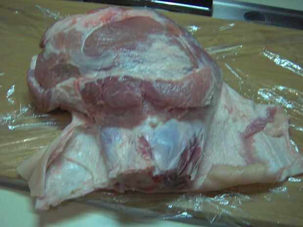 Tome un cuchillo afilado y cuidada, quitar la grasa de jamón. Si el jamón está muy frío, facilita el trabajo.
