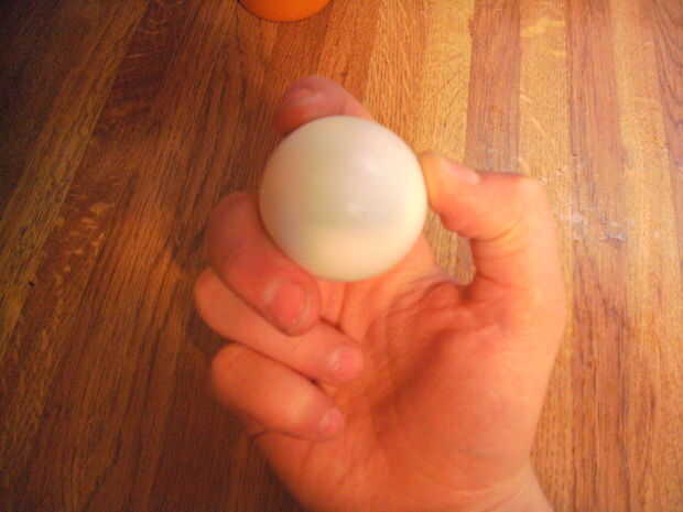 Huevos duros medio toman 8 minutos. Empresa tomar hasta 30 minutos. El secreto revelado aquí es bajar la cáscara sin rompiendo el huevo.Paso 1: Hervir un huevo Poner suficiente agua en la bandeja para cubrir el huevo. Llevar a hervir. Hervir durante
