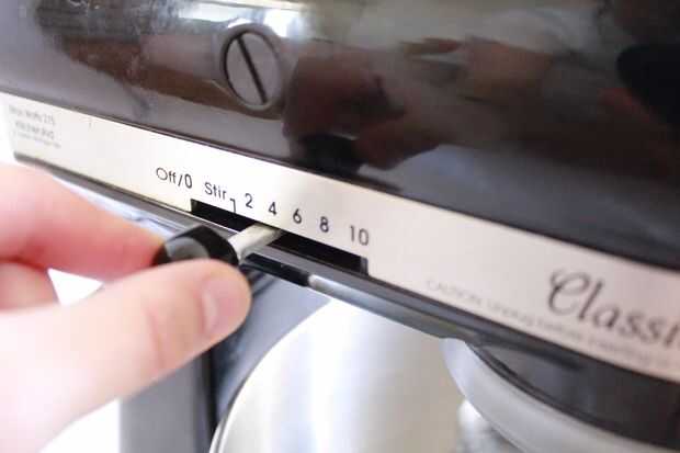Aumentar la velocidad de la batidora al medio (Kitchen Aid velocidad 4 a 6) y continuar batiendo.