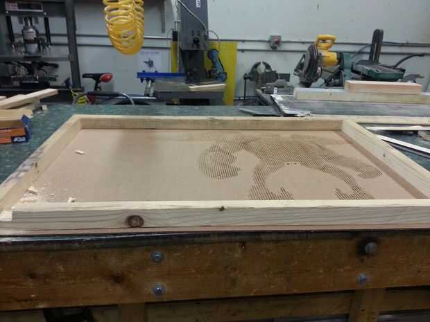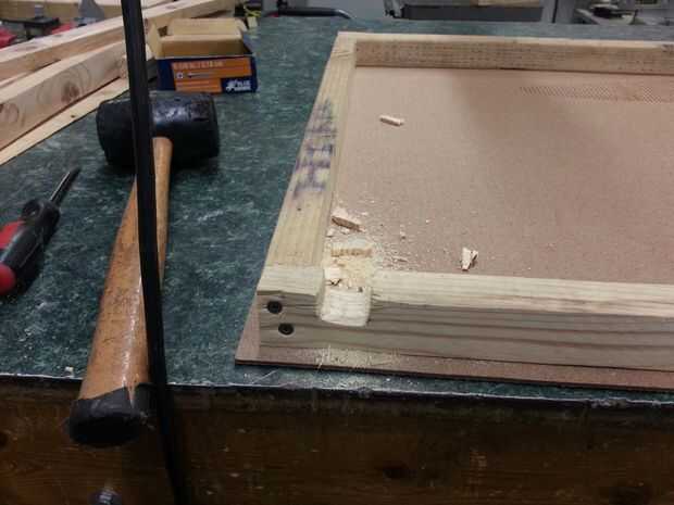 - Coloque el marco sobre una mesa, lo que es cuadrado con una de las esquinas de la mesa.