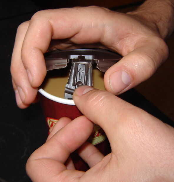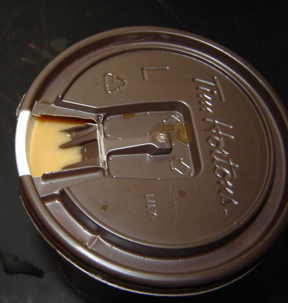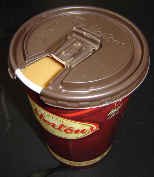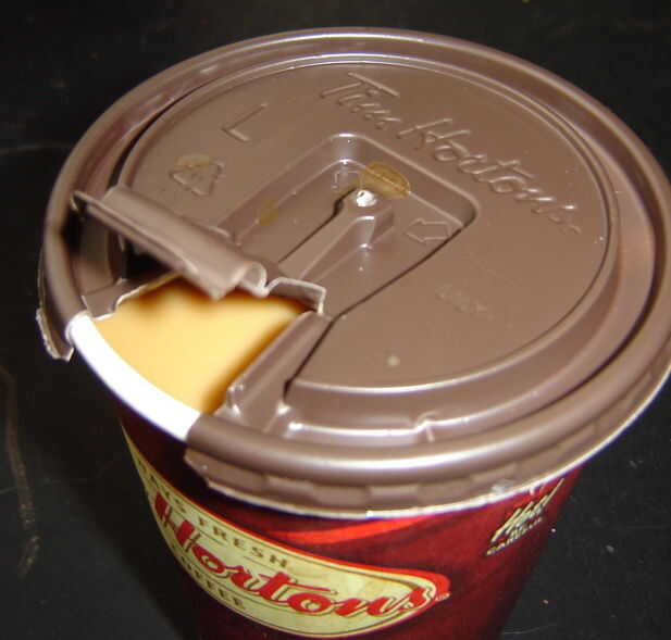 No, no entendemos cómo a tomar su café con una mano mientras yakkin'en el CB con el otro; Esta es una brillante forma de configurar su taza de café de papel para llevar a reducir la probabilidad de un derrame. Esto fue demostrado a mí por un camionero en un Tim Hortons en Hamilton, ON. Para aquellos de ustedes familiarizados con Hamilton, tiene la mayor densidad de tiendas de Donuts y café en el mundo entero... Estas personas saben cómo tomar su café!