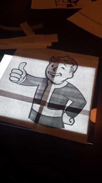 Primero necesita averiguar lo que quieras en una camiseta. A menos que usted puede dibujar sus propios diseños (que harían esto mucho más fácil), búsqueda de imágenes Google es tu mejor amigo para esta parte. Mediante la adición de "plantilla" o "silhouette" para el final de su búsqueda, puede encontrar imágenes que son relativamente fáciles de lejía en una camiseta. Por ejemplo, con esta camisa, fui a Google y búsquedas en "Plantilla de Fallout" y encontrar la imagen que utiliza, además de muchos otros posibles candidatos.