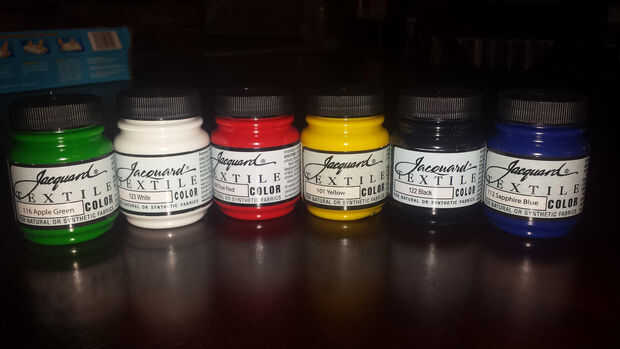 Como se ve en el otro cuadro, también compré algunas pinturas textil de Amazon. Aunque sería posible utilizar el mismo proceso, haciendo una plantilla y luego pintar la camisa; Compré estas pinturas con otra idea en mente. Todavía quiero blanquear las camisas y luego usar la pintura para resaltar ciertas características. Esta idea vino a mí cuando pensando en hacer una camiseta con una torreta centinela de Portal, utilizaría la pintura roja para resaltar el "ojo".