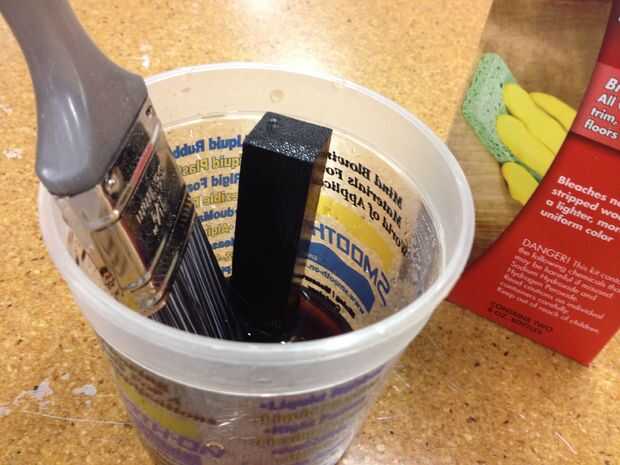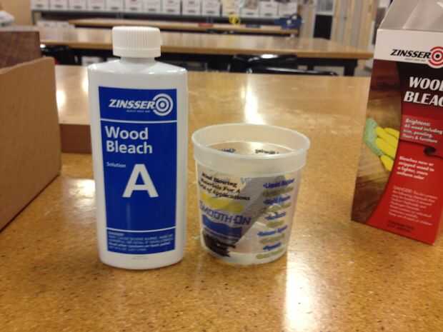 El blanqueador de madera la caja viene con 2 botellas, marcados A y b. Vierta un poco de solución A una taza, la caja dice cepillo en. Quería que el efecto a ser realmente dramático así que había empapado mi madera en él. Se sumerja en esta solución durante unos 10 minutos y usted se color inmediato ejecución fuera de la madera