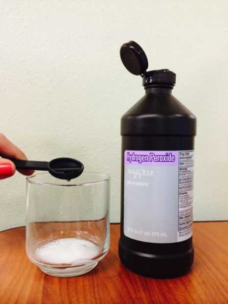 Mida 2 cucharaditas de agua oxigenada para agregar al bicarbonato de sodio.