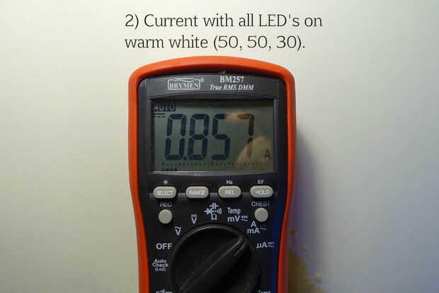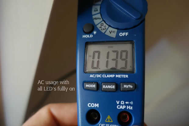 1) todos en (blast completo, es decir 255,255,255) = 0.139A = 30.0W (asumiendo factor de potencia de 0.9)