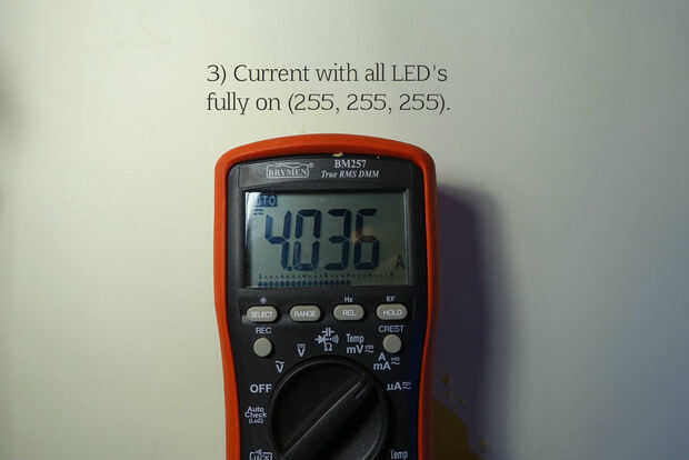 3) todos en (blast completo, es decir 255,255,255) = 4.036A = 20.18W