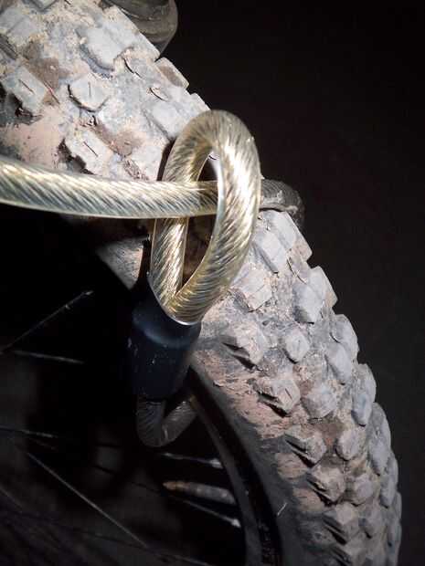 Hacer un bucle a través de la rueda delantera con la cerradura del cable.