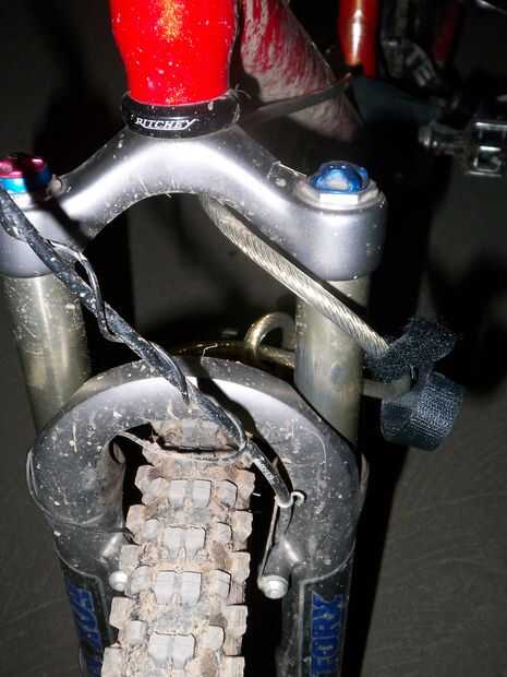 Tome el cable que usted solo lazo a través del frente de la rueda y la corona de la horquilla y el arco, esto disuadirá a las personas de robar bonito choque frontal.