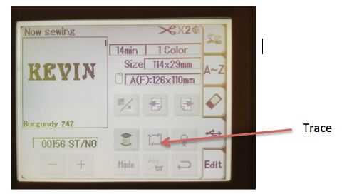 Utilice el botón de seguimiento para tener la demostración de la máquina exactamente donde planea coser sus cartas. No coserlas, pero circulan por el lugar – seguimiento – donde van. Así puede ajustar dónde colocar sus cartas dentro del aro precisamente.
