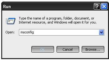 así que vaya a Inicio, ejecutar y luego ejecute msconfig