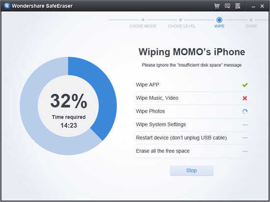 Alto: Borrar y sobreescribir su dispositivo tres veces, y la seguridad estándar se basa en los Estados Unidos DOD 5220,22-M, más seguro para la destrucción de datos confidenciales en el dispositivo.