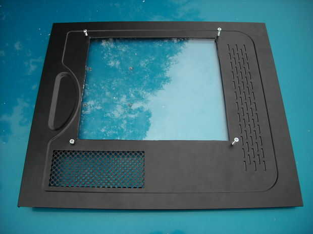 Ahora necesita cortar su caso para adaptarse a la ventana. Asegúrese de que la ventana del esquema con lápiz y luego tomar una regla e ir aproximadamente 1/2 pulgada en el contorno de la ventana para que tenga espacio para perforar los agujeros para sujetar a la caja. Luego perfore los agujeros y coloque los tornillos con las tuercas en el otro lado para mantenerlo en su lugar.