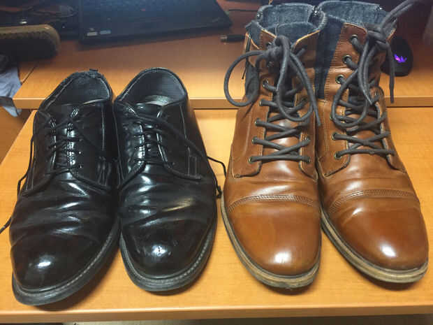 1. un par de barrios bajos (zapatos de uniforme militar) o cualquier otro tipo de zapato de cuero