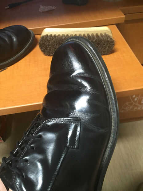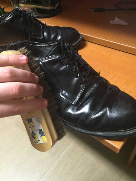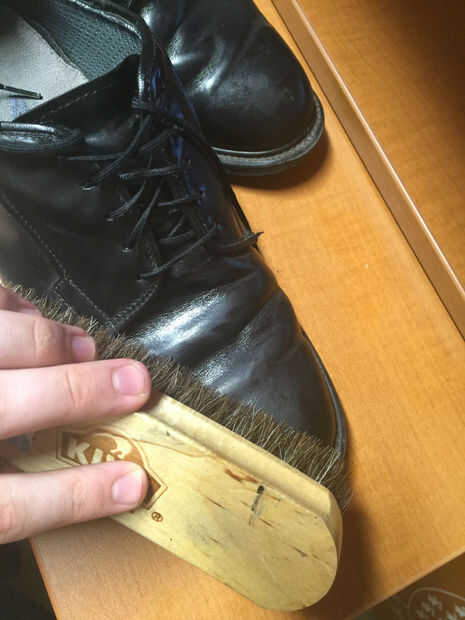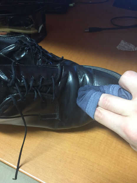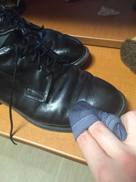 Después de todo de las primeras capas son en el zapato, tomar el pincel y frotarla ligeramente sobre la totalidad de la base (Foto 2). Esto pone un brillo preliminar en el zapato y facilita todo este proceso.