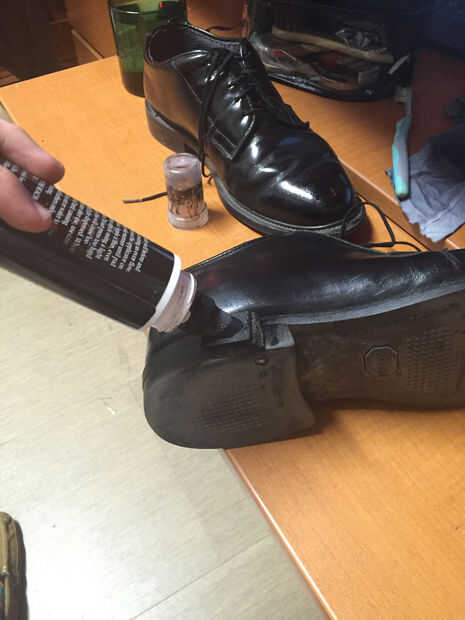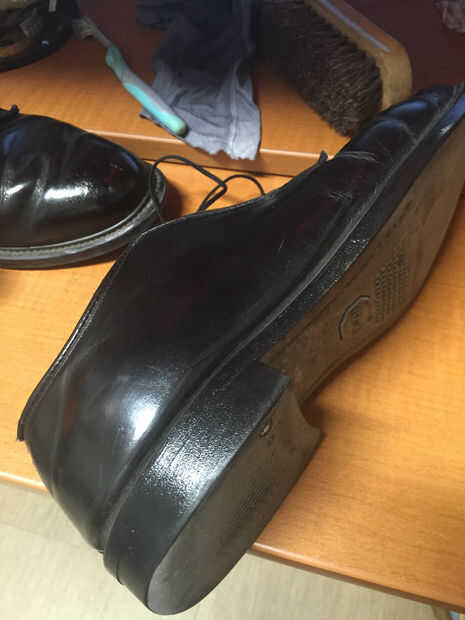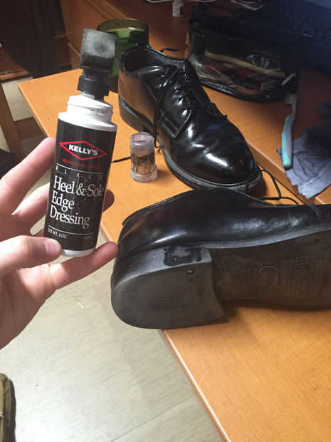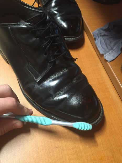 Para asegurar que los lados de la suela del calzado esté limpia, tome su cepillo de dientes viejo y limpie la rosca que fija la piel a la suela (cuadro 1). La suciedad tiende a recoger allí y limpiar esto asegurará que tus zapatos se ven bien.