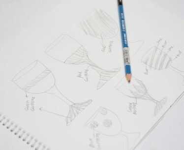 Hacer rayas de brillo alrededor de la taza de vidrio o el tallo. Se raya el vidrio con cinta de pintor para crear incluso rayas.