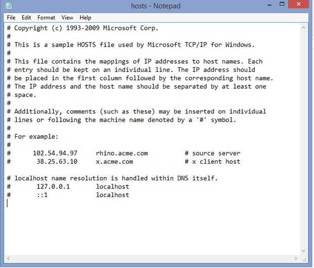 Por lo tanto, este es donde usted hack DNS, después abrir hosts archivo (paso 2), le ve como esta: