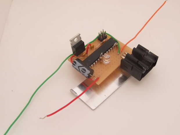 Se trata de un Arduino' mínima' con una fuente de alimentación de 5V regulada derivada de 12V usado para alimentar los LEDs. El regulador es bog 7805 estándar. Todo lo que necesita el ATMega168 es potencia, una línea de reset a la altura de vía una resistencia y las conexiones a los pines de programación ISP. Las agregué porque no quiero que el procesador del zócalo y tienen que eliminarlo para volver a programarlo. He añadido el LED blanco para mayor comodidad - siempre me gusta tener un 'heartbeat' para mostrarme que el procesador está funcionando mi código correctamente. Instalado el LED 'pin 13' por lo que es arduino compatible (puedo ejecutar 'parpadear' para probar).