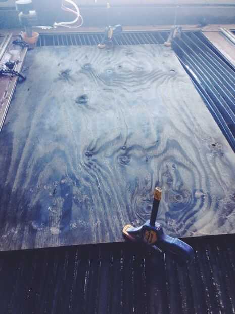 Fije la madera contrachapada firmemente a la cama por chorro de agua y preparar la máquina para ejecutar su trabajo.