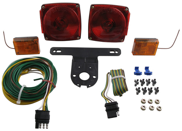 Mientras yo estaba convertir este remolque de barco antiguo a un remolque de utilidad, me di cuenta de que tenía que rehacer las luces porque los antiguos eran agrietados y no funcional. Comencé por conseguir un juego de luces de remolque al Tractor Supply para $17 el arnés de cableado, dos señales de vuelta posteriores, dos luces de montaje lateral y varios conectores.