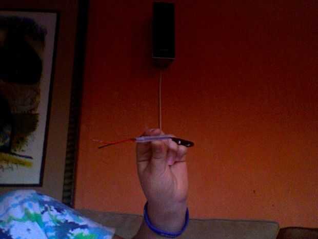 poner los cables a través de la tapa de la pluma. Utilice cinta adhesiva para moldear la llevaron a los cables