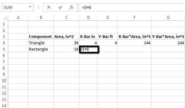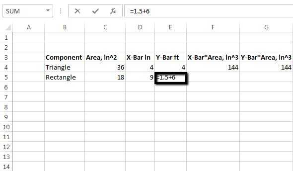 El X bar del rectángulo es la mitad de la longitud del rectángulo (3) más la distancia desde el origen hasta el lado izquierdo del rectángulo en la dirección x (6). La barra Y del rectángulo es la mitad de la anchura del rectángulo (1.5) más la distancia desde el origen hasta la parte inferior del rectángulo en la dirección y (6)