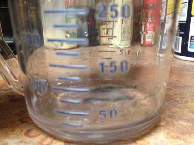 Quite el objeto y dibuja otra línea oscura en la taza de medición a la altura de la nueva línea de agua. Asegúrese de que esta línea está por debajo de la primera línea en el lado de mililitro de la taza de medición. Vierta el agua el fregadero cuando termine; hará que sea más fácil ver las líneas.