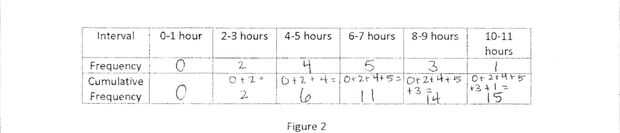 Ver figura 2 para ver cómo los datos del ejemplo presentado en el paso 1 en una tabla de frecuencia acumulativa.