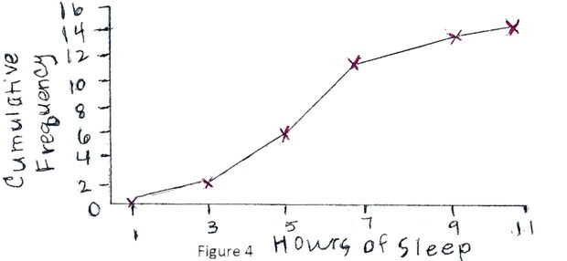 La figura 4 muestra cómo los puntos de datos de frecuencia acumulativa se trazan y conectados por el ejemplo del sueño.
