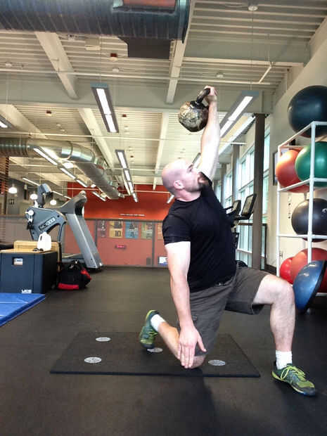 - Debe sentir la línea de fuerza que de la mano de Kettlebells la rodilla opuesta.
