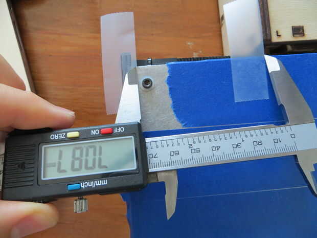 Si se mide 70 mm perfecto, su eje está calibrado. Lo más probable es que no llegar exactamente a 70mm en su primer intento sin embargo. Tome nota de la medida que tomó. En mi caso tengo 70,87 mm.