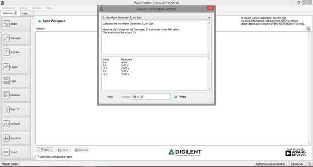 Formas de onda de 2015 es una pieza de software desarrollado por Digilent diseñado para uso con el Analog Discovery 2, Descubrimiento análogo,EE Juntao Analog Discovery 2 NI edición.Proporciona la interfaz de usuario para un osciloscopio de canal 2,