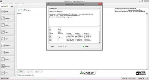 Formas de onda de 2015 es una pieza de software desarrollado por Digilent diseñado para uso con el Analog Discovery 2, Descubrimiento análogo,EE Juntao Analog Discovery 2 NI edición.Proporciona la interfaz de usuario para un osciloscopio de canal 2,