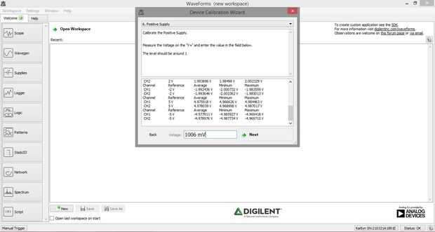 Formas de onda de 2015 es una pieza de software desarrollado por Digilent diseñado para uso con el Analog Discovery 2, Descubrimiento análogo,EE Juntao Analog Discovery 2 NI edición.Proporciona la interfaz de usuario para un osciloscopio de canal 2,